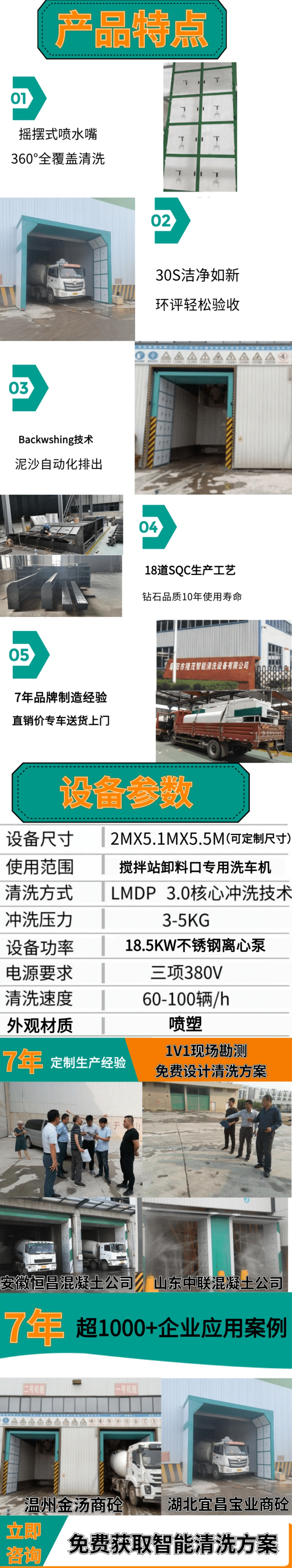 龍門式卸料口洗車機采用龍門式結(jié)構(gòu),安裝在攪拌站下料口門口,不需要占用攪拌站額外場地,該系統(tǒng)側(cè)面采用搖擺式水刀結(jié)構(gòu),能夠進行全車沖洗,卸料口洗車機頂部設(shè)有頂噴,地面設(shè)有底盤沖洗,對于攪拌車的料斗設(shè)有下料斗沖洗,整個過程采用全自動控制,操作簡單方便,功能顯著